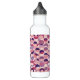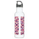 Uma garrafa de água com um design contemporâneo de tom roxo.