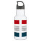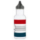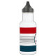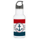 Design náutico com decoração em forma redonda com âncora sobre fundo azul, vermelho, cinza e branco listrado