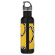 Esta liberdade moderna do alumínio tem um padrão estranho de círculos listrados em preto e branco sobre um fundo de ouro amarelo.