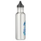 Esta garrafa de água de aço tem um dragão colorido e detalhado nas máscaras de azul e de roxo.