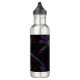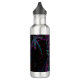 Cinco libélulas roxas fabulosas e píxeladas azuis flertando sobre um fundo preto mosqueado.