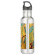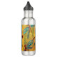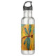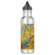 Lindas libélulas aladas azuis e bronze flutuam sobre um fundo amarelo-ouro malhado.