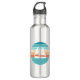 Design do pôr do sol no estilo da década de 1980 em um efeito angustiante com o centro de ilustração do veleiro na frente.