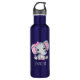 Garrafa de água personalizada com uma ilustração de cor de água elefante rosa e fofinha. Ela tem orelhas bonitinhas, cor-de-rosa e bolinhas branca e arco bonito de fita rosa sobre a cabeça.