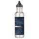 Banda prateada e mandala floral sobre fundo azul marinho.