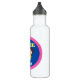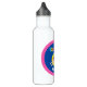 Crianças incríveis, presentes de garrafa de água personalizada para uma criança da equipe de natações no verão. Possui um círculo rosa brilhante e divertido ao redor da água azul e uma adorável garota morena de natação em um tubo interno. Personalizar com um nome ou outro texto.