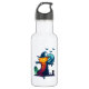 Uma garrafa de água com uma legal ilustração de halloween. Um grande espantalho assombrado, olhando mau com uma cabeça de abóbora de jack-o-lanterno, vestindo um chapéu de bruxas. Ele tem um sorvete ameaçador vestindo vestes esfarrapados e está parado em um cemitério com um corvo gritando no braço. Morcegos voando à distância, uma lua de cheio no fundo e uma coruja solitária com olhos brilhantes sentam-se em uma lápide.