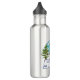 Esqui, logotipo de poster de esqui em uma linda paisagem de desenho animado.