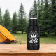 Crie uma garrafa de água personalizada única para sua próxima viagem de acampamento, férias de caminhada ou aventura ao ar livre. Uma garrafa de água mostra o acampamento bonito dizendo "é tudo bom na floresta" em letras brancas rústicas sob um trio de pinheiros. A maneira perfeita de comemorar uma viagem especial, ou para quem ama acampar, caminhar e o exterior, você pode personalizar esta garrafa com sua escolha de texto embaixo da design. Adicione seu destino de acampamento, o ano ou um nome de família para um toque especial.