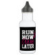 Uma garrafa de água super legal diz em letras negras e martirizadas na frente e atrás "RUN NOW Wine LATER" com um corredor rosa na lateral. Isso seria um presente de excelente para o corredor da sua vida, um verdadeiro líder na corrida! Vá em frente coloque um SMILE no rosto deles!