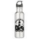 Caneca gráfica de farol de vida na praia, palmeiras e golfinhos preto e branco.