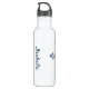Uma garrafa de água de skater personalizada, um belo presente de patinação de gelo! Além disso, manter durante a prática na pista ou usar durante a vida cotidiana.Cores: tons de azul sobre fundo branco.Design: Uma silhueta de uma garota patinando sobre linhas de ponta de estrela + personalize com o nome do skater.