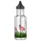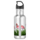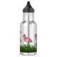 Flamingos em grama verde alta e emparelhado com seu nome.