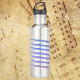 Você está procurando um presente para o flautista em sua vida? Esta garrafa de água tem um gráfico de flautas feitas em rosa, azul e roxo.