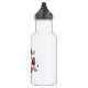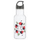 Garrafa de água de morangos brancos, com uma ilustração vetorial que representa 5 caracteres de morango felizes sorrindo, dançando num círculo rodeado por folhas e flores da sua própria espécie. Design divertida com espírito primavera para uma pessoa que ama essas frutas deliciosas.