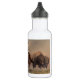 Em uma tempestade da névoa, da poeira, das rochas, e do vapor, um indiano conduz a cavalo uma equipe do búfalo que troveja através da planície gramínea.