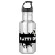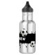 Garrafa de água em aço inoxidável com faixa preta de rixa e bola de futebol sobreposta com seu nome. Ótima ideia de presente para filho, filha, treinador, presente de aniversário ou para quem quer beber mais água.