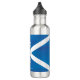 Garrafa de água/uísque bital, tradução gaélica escocesa com bandeira escocesa; fundo salgado pintado com tinta azul de cor d'água.