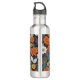 Um gato preto e branco senta-se cercado por uma abundância de flores brilhantemente coloridas em tons de laranja, azul, rosa e amarelo. O fundo é repleto de um padrão floral denso e intrincado que destaca os olhos amarelos cativantes do gato.