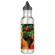 Garrafa de água com um gato natal vintage! Um gatinho laranja com listras pretas senta-se na neve. Atrás do gato está uma árvore de Natal com ornamentos vermelhos e amarelos. Também na neve há um presente vermelho. Um presente perfeito para a época de Natal e amantes de gatos!