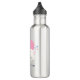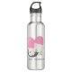 Uma garrafa de água com uma ilustração gráfica adorável. Uma gatinha branca com uma bela imagem impressa no pelo. Dormindo em paz. Um grande coração rosa atrás dela e algumas estrelas pequenas também. O texto diz: Cat Person.