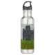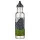 Uma cena 3D criou em Vue, mostrando o local de uma batalha antiga, com apenas as ruínas desmoronantes de uma torre de pedra medieval e flores vermelhas na grama para comemorar. A chuva em queda e o efeito de aquarela macia aumentam a tristeza da cena do topo da colina.