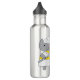 Você está procurando um presente de excelente para um membro de uma guarda colorida? Eles vão adorar esta garrafa de água que tem um gato cinza giro carregando uma bandeira amarela e vestindo uma roupa de guarda amarela e branca.