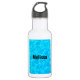 Garrafa de água com uma fotografia de água azul clara de piscina, com reflexos brilhantes.