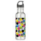 Este é o impressão perfeito para tudo você jogadores do pickleball. Esta garrafa de água tem azul, amarelo, verde, cinzento, branco e mesmo os pickleballs fúcsia arranjados nos círculos em um fundo branco, simplesmente adorável! Este impressão é os direitos reservados ©2017 por Marc Dubé.