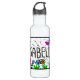 O nome da garota é Isabella water botija com bonito arte branca, roxo, rosa, flores verdes limões e borboletas.