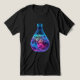 Frasco com gota de rasgão cheio de conteúdo de rotação. Abstrato, colorido.