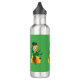 Garrafa-de-água com uma Ilustração de um duende sorridente dançando alegremente vestindo um terno verde, uma gravata de arco e um chapéu de boliche; com notas pretas e um arco-íris amarelo e laranja em fundo verde. Uma design perfeita para celebrar o Dia de São Patrício!