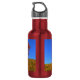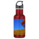 Uma paisagem 3D pacífica no outono, criada em Vue. Em cima de uma colina coberta por ouro alto, contra um céu azul claro, um mapa solitário de laranja se posiciona com uma bancada de madeira embaixo dela para parar e descansar.