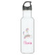 Garrafa de água de unicórnio fofa personalizada. Este divertido design personalizado apresenta uma doce ilustração de unicórnio, estrelas e um arco-íris. Cores cor-de-rosa, roxo, azul e amarelo com um toque de brilho dourado sujo.