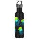 Design Luminescent das medusa. Pequena frota de flutuação néon vibrante de medusa coloridas. Garrafa de água de alumínio legal, eco-amigável.