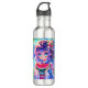 Menina de anime adorável comendo melancia em um dia quente de verão, um desenho colorido bonito em azul, roxo e rosa.