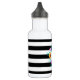 Garrafa de água à moda com a grinalda floral da aguarela no fundo listrado preto & branco. Personalize o monograma escolhendo de muitas pias batismais maravilhosas.
