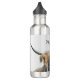 Monograma inicial do retrato das vacas altas. Fotografia de um majestoso gado de terras altas, laranja-acastanhadas, num dia nevado, com fundo branco.