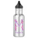 Frasco de bebidas monograma com letra M personalizada. Personalize com seu próprio nome, lendo atualmente Michelle. Outras letras estão disponíveis. Purple - Letra M monograma torcido com orquídeas selvagens cor-de-rosa pintor de água e design por Sarah Trett para www.mylittleeden.com