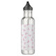 Customized thermal water bottle for her printed with a handpainted pink watercolor bow pattern on canvas-textured background hand painted by Anne Londez, perfect for a coquette feminine water bottle, personalized with your own monogram initial. Edit the text to enter your own initial.