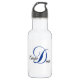 Pense o dia com esta garrafa de água inspiradora. Este design de texto está em uma bela fonte de script fluindo em cores de preto e azul profundo contra um fundo branco.
