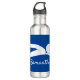 Nadar Design com uma garrafa de água com cor de fundo e texto personalizáveis.