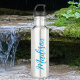 Uma garrafa bonito de água inox monográfica azul brilhante e clara para uma garota que ama presentes simples e escritos à mão. Belo roteiro cursivo ao lado da sua garrafa soletrando seu nome em legal tipografia.