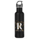 Esta elegante garrafa de água monográfica na moda personalizada apresenta um monograma inicial dourado com um inicial branco e um nome sobreposto, sobre fundo preto.