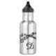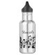 Garrafa de água na moda moderna, com notas de música a preto, contra um fundo transparente editável, para que a cor da garrafa apareça através de personalização com um nome e monograma num roteiro manuscrito editável. ALTERAÇÕES: Você pode alterar o plano de fundo para uma cor escolhida ou alterar o estilo, tamanho, cor e posicionamento da fonte de texto clicando em PERSONALIZAR AINDA MAIS na seção PERSONALIZAR. ASSISTÊNCIA: para obter ajuda com a modificação/personalização do design, alteração de cor, transferência do design para outro produto ou, se você quiser coordenar itens, entre em contato com o designer ANTES DE ENCOMENDAR através da guia MENSAGEM de bate-papo Zazzle ou por e-mail em makeitaboutyoustore@gmail.com.