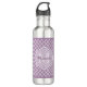 Adicione uma impressão moderna sofisticada a seu estilo pessoal com esta garrafa de água roxa e branca na moda da luz - do quatrefoil do teste padrão com um monograma moldado elegante. Personalize este design à moda adicionando sua inicial conhecida e monogrammed.