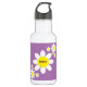 Esta adorável garrafa de água apresenta flores brancas com fundo roxo e um nome personalizável.