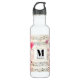 Garrafa de água com um design elegante e nostálgico. Folha de música decorada com um grande coração cor-de-rosa e rosas rosa e flores silvestres ao redor das bordas.