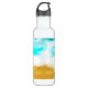 Ondas de Turquesa Oceânica Atingindo a garrafa de água de areia.