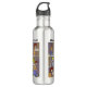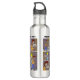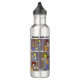 Uma garrafa d'água com um desenho engraçado sobre os estudantes confiando apenas em celulares para se encontrarem. Arte original de BD Cartoons.